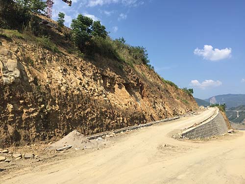 邊坡治理包括A線、B線兩段,全長(zhǎng)約0.5Km,A線坡高約21m、B線坡高約25m,巖性為砂泥巖互層,巖體較破碎,采用:削坡+格構(gòu)錨桿(或錨索)+錨噴+護(hù)腳墻進(jìn)行治理。