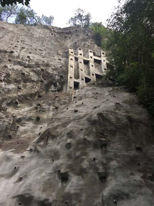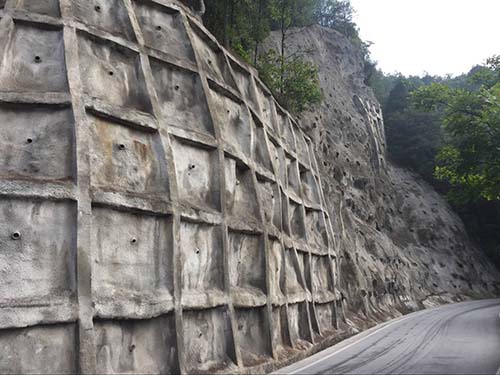 由于近期連續(xù)降雨,國道G319線渝北段巖質路塹邊坡坡面發(fā)生崩塌落石等災害險情。該段邊坡應急搶險采用“格構錨固+錨噴防護+巖腔支撐+截排水溝”等措施進行綜合治理。