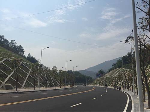 (1)邊坡防護(hù)簡潔美觀(2)防護(hù)工程綠化良好