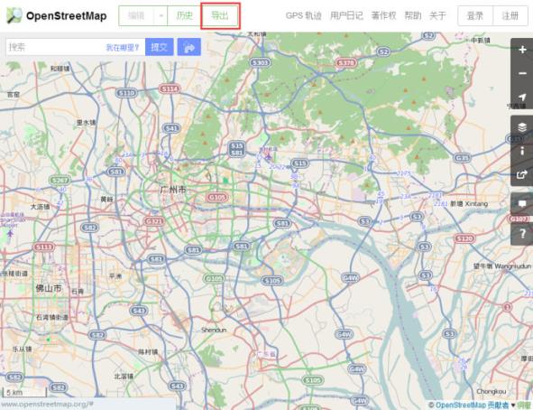 OSM數(shù)據(jù)的獲取主要是從網(wǎng)站(http://www.openstreetmap.org/)?中的“導(dǎo)出”界面進行獲取。